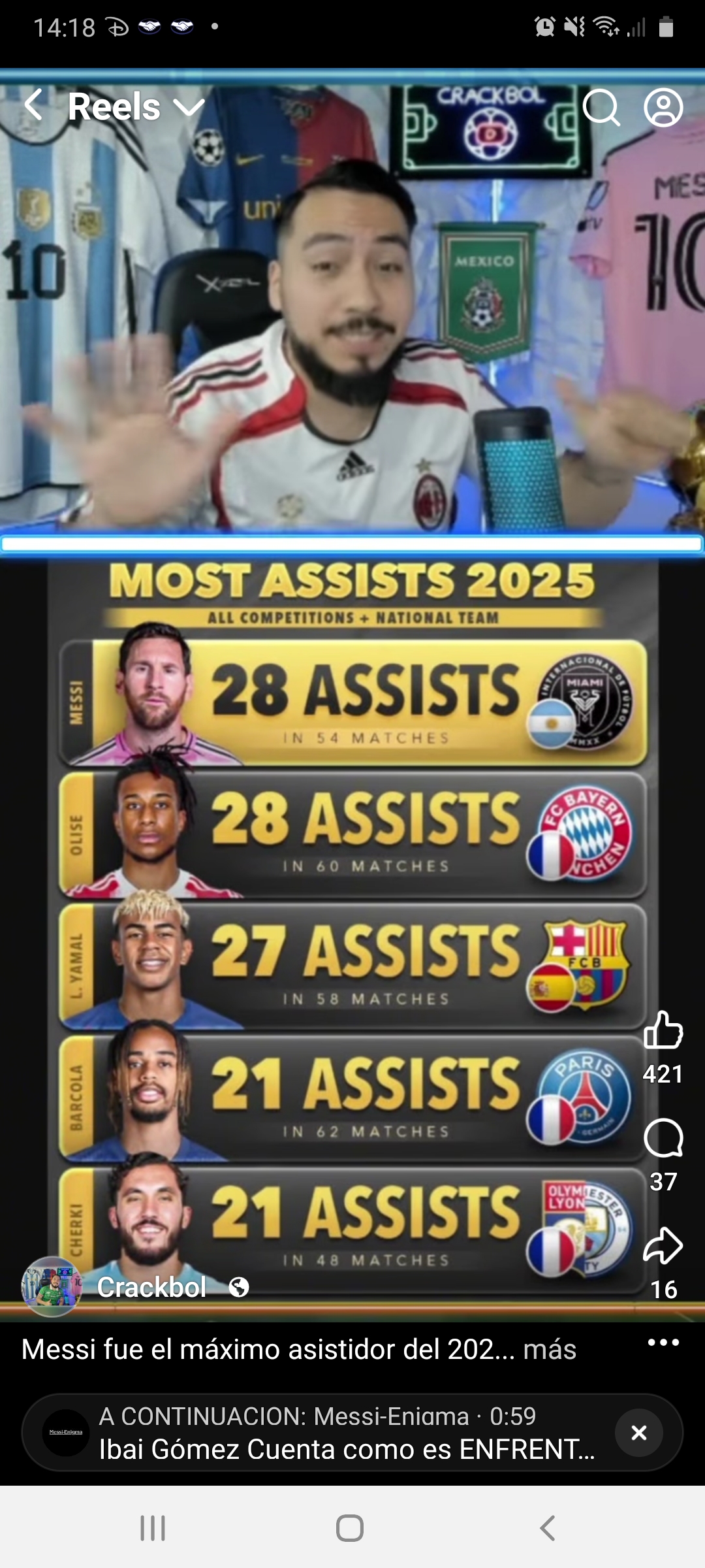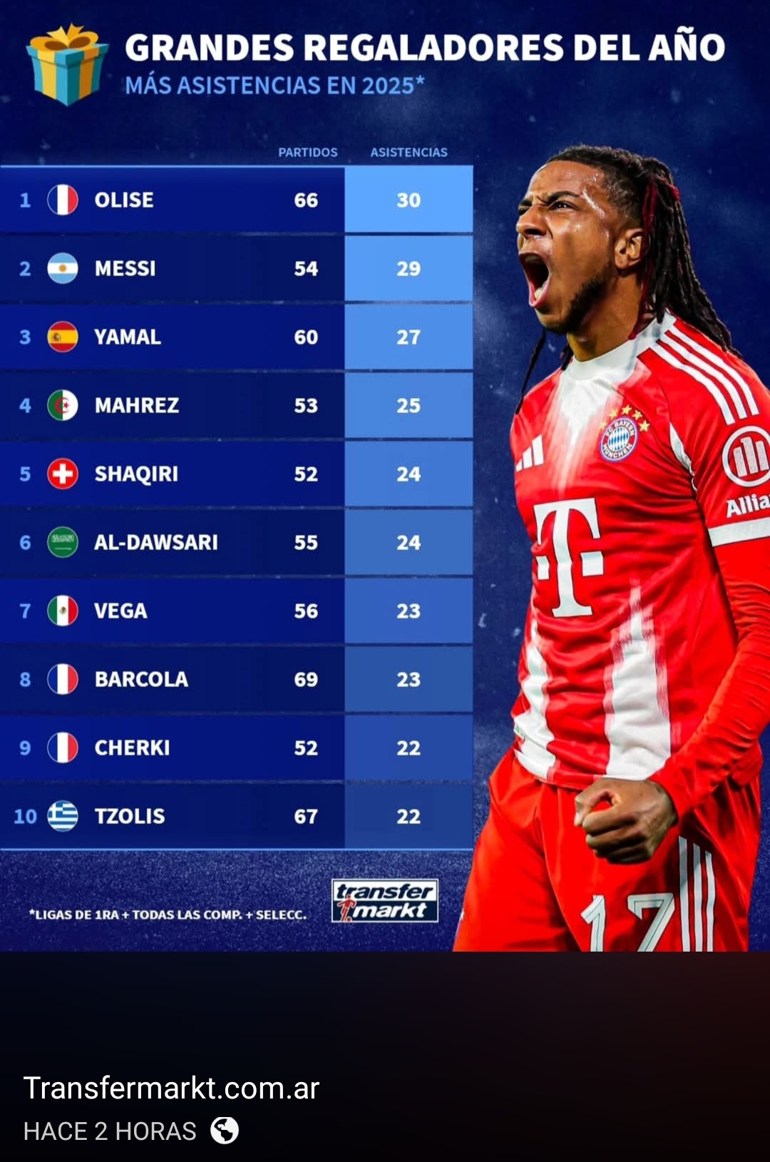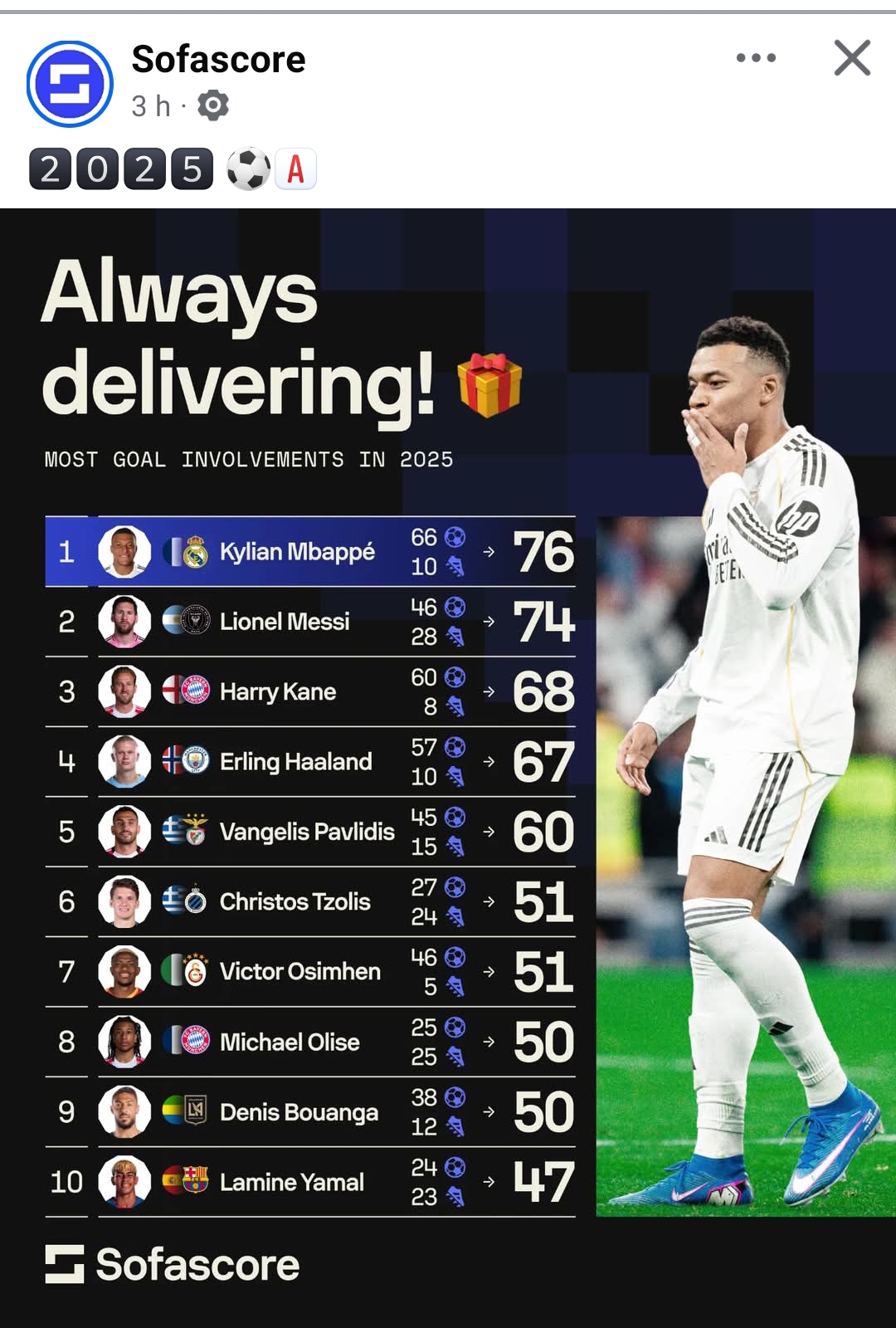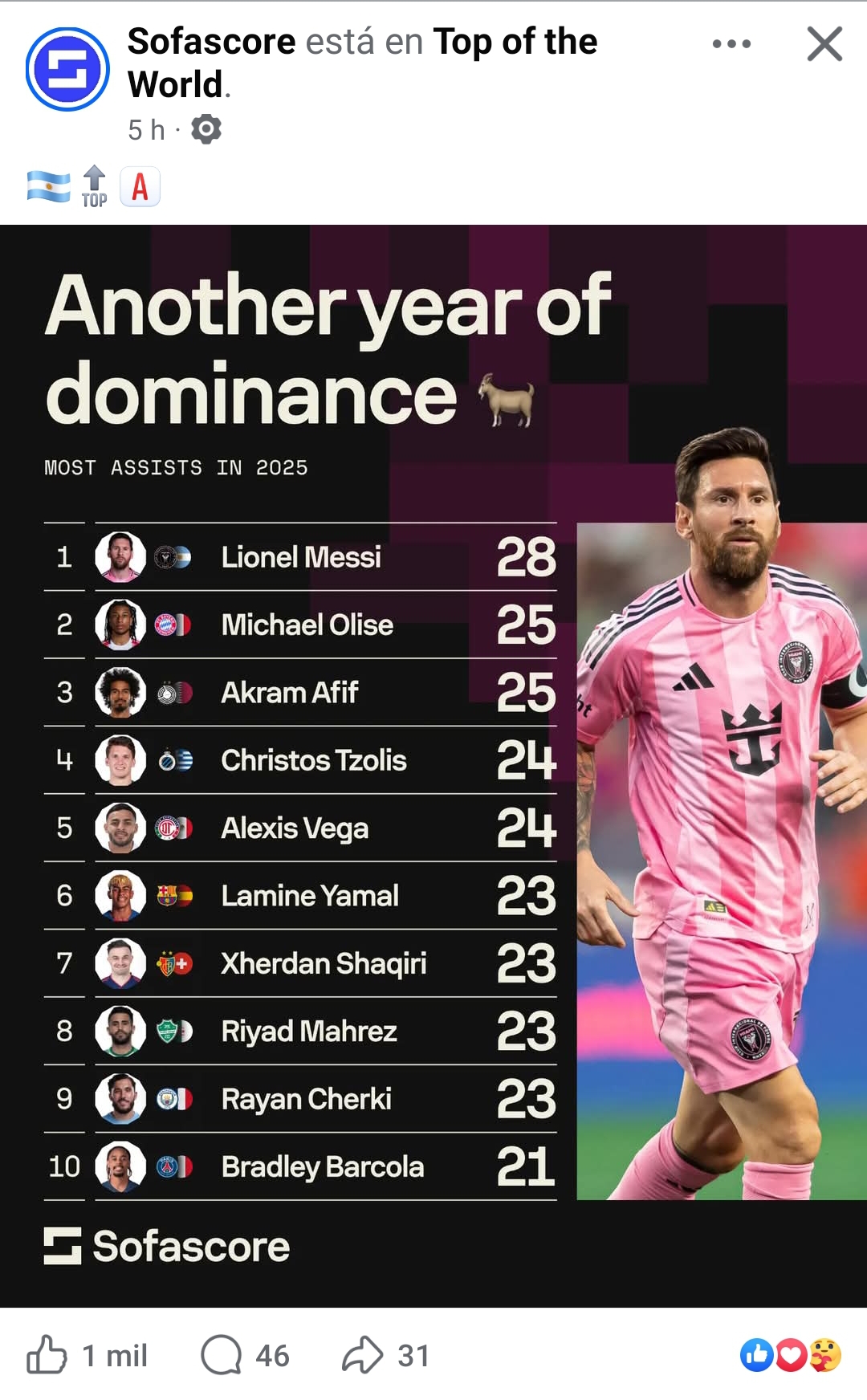 Entonces Messi terminó el año con más G+A del 2025 no??…me parece que sí o alguien lo pasó por poquito.