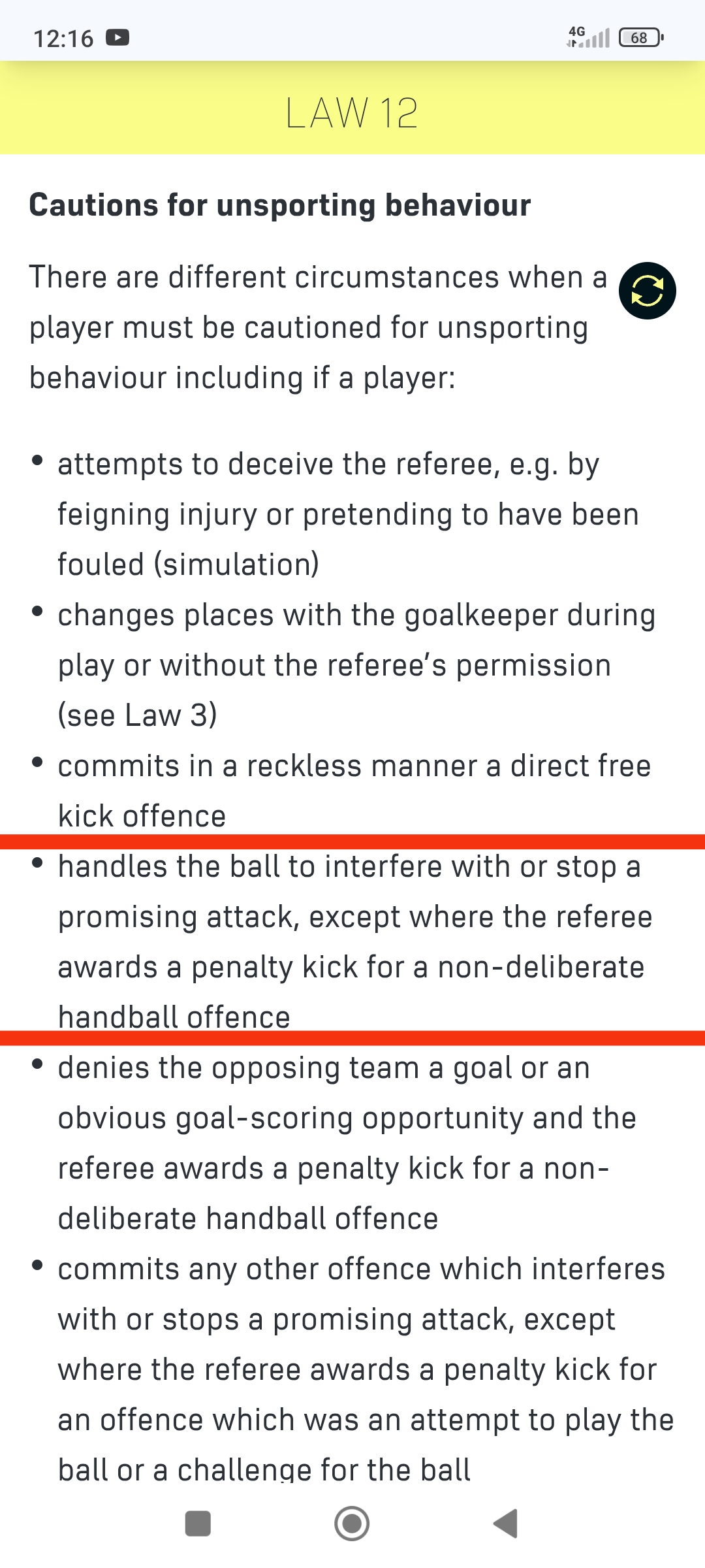 Hay diferentes circunstancias donde un jugador debe ser amonestado por conducta antideportiva incluyendo si un jugador: