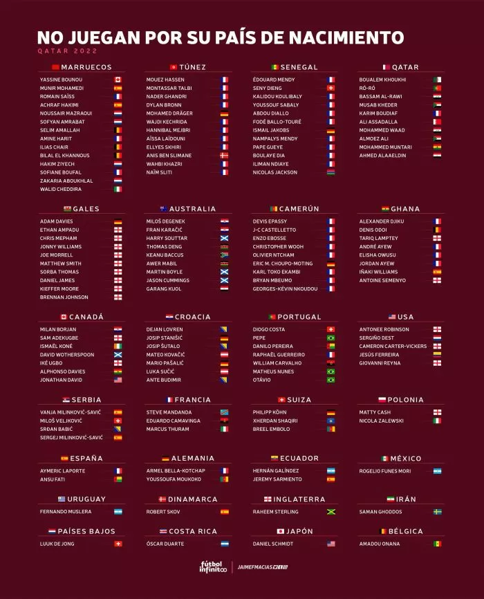 Mundial Qatar 2022: 137 futbolistas nacieron en un país pero representarán a otro seleccionado