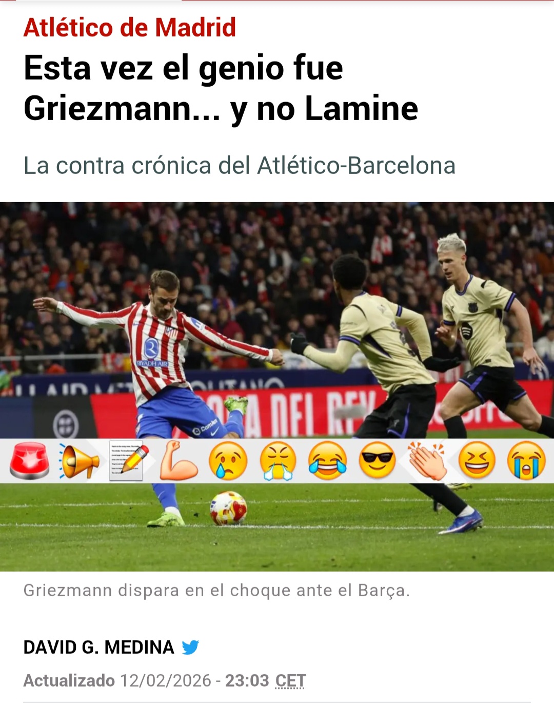 Te comparto titular del diario Marca, usando la palabra genio para referirse a Griezmann y Lamine Yamal.