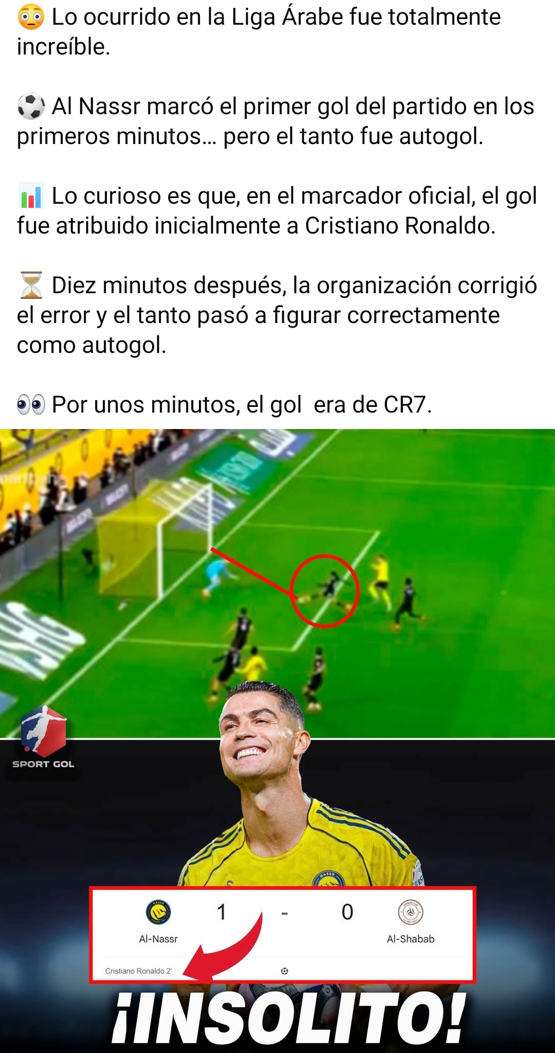 Bueno, el caso del primer gol es que el defensor la mete contra su propio arco y llega Cristiano a empujar el balón cuando ya estaba dentro. Obviamente en una primera instancia se lo dieron a él y luego se lo quitaron.