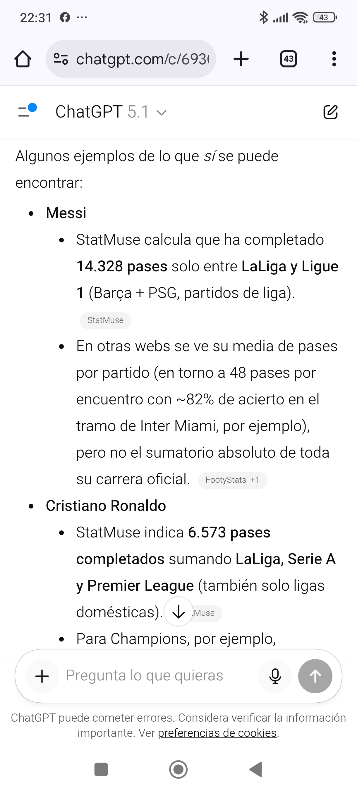 Te lo compro. A ti te parece mejor Messi por el argumento de qje suma numéricamente más stats. Más Pases clave y más asistencias. A ti te vale, y es loable.