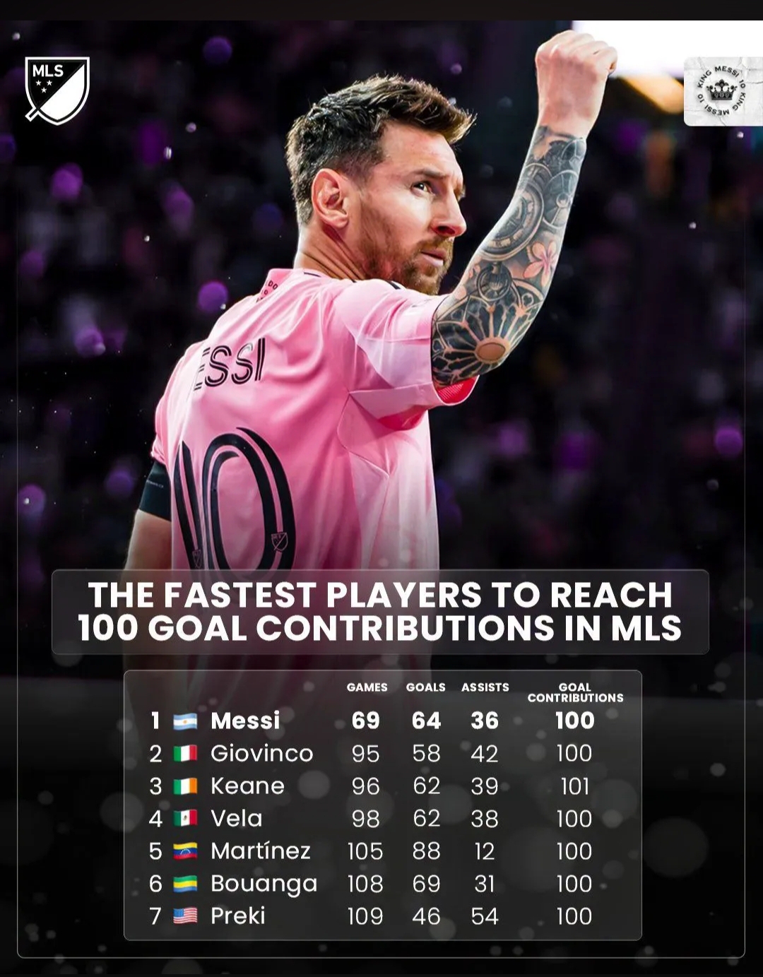 Aunque en ese post parece que están tomando datos solamente de la temporada regular (sin la MLS Cup), porque Bouanga aparece con 108 partidos, los mismos que tiene en campaña regular según el sitio oficial de la MLS. Raramente, en el sitio tiene 69 goles y 28 asistencias en vez de 69+31. Messi tiene 57 goles y 37 asistencias en campaña regular según el sitio oficial.