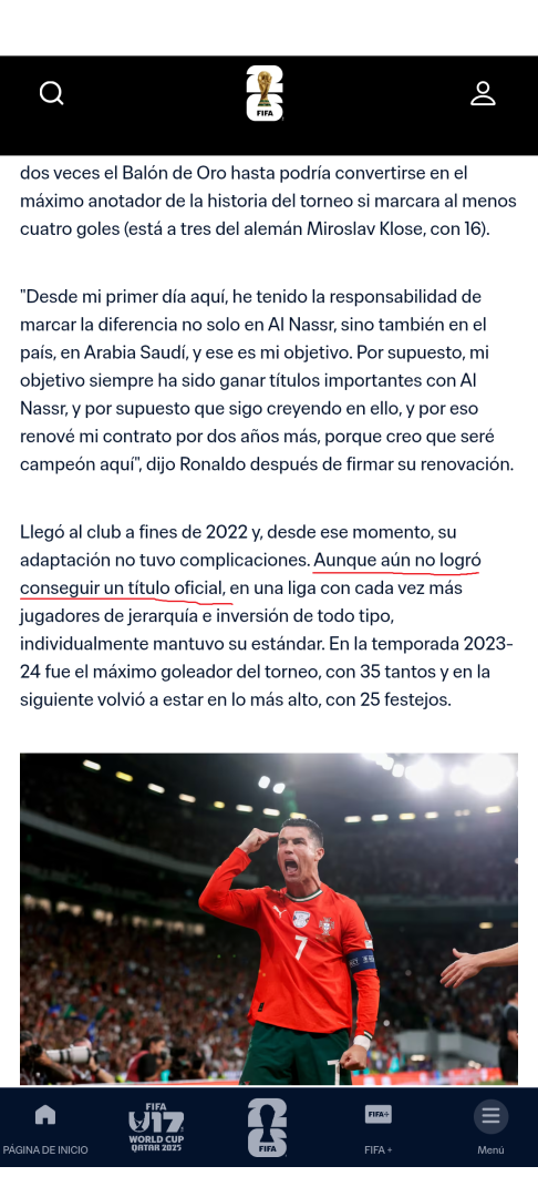 Agrego el link, espero comentarios de los amantes de bicho, y que @michelacosta quite esos golitos regalados y amistosos. Reinicien el conteo. https://www.fifa.com/es/tournaments/mens/worldcup/canadamexicousa2026/articles/messi-y-cristiano-un-hasta-luego-al-retiro-con-ambiciones-altas