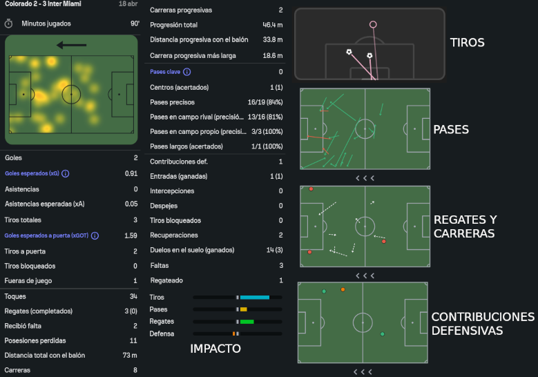 - Llega a los 50 goles generados con el Inter Miami en partidos de visitante (36G + 14A).