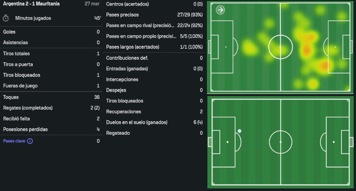 Descripción: Entró y tocó, pero sin mucho brillo más allá de un pase al área