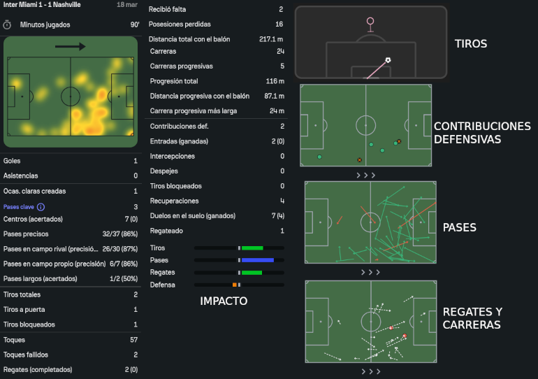 - Llega a los 70 goles en juego abierto con el Inter Miami (53 dentro del área, 17 fuera del área).