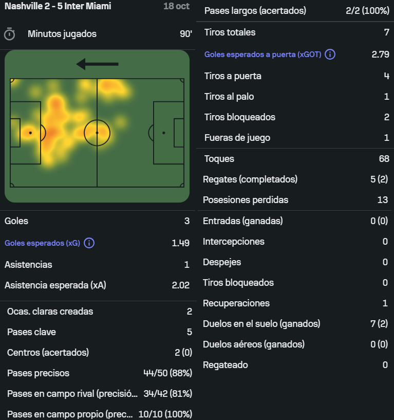 - El Nashville SC se convierte en la víctima de Messi Nº 46 a la que le ha asistido 3+ goles en toda su carrera, y Nº 38 a nivel de clubes.