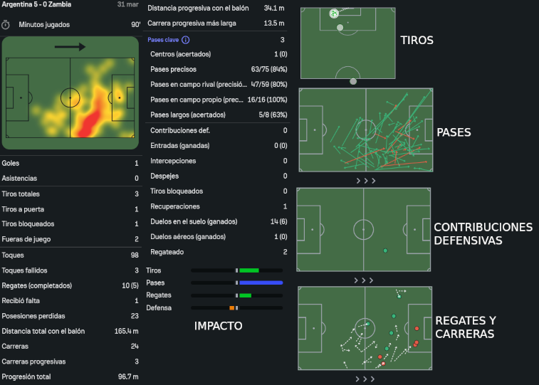 Descripción: Bajo de zurda para el gol, algunos buenos pases de peligro y con gambeta para dejar su marca en la goleada