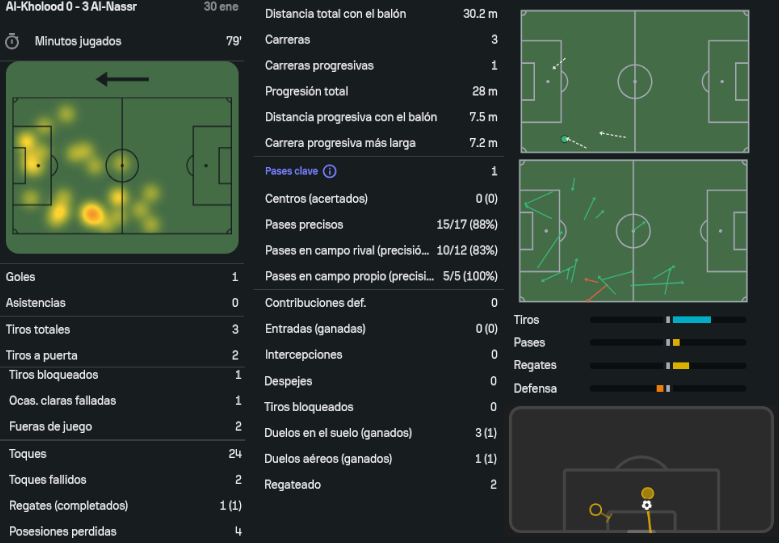 Además, tuvo un xG de 1.1 y un xA de 0.08.