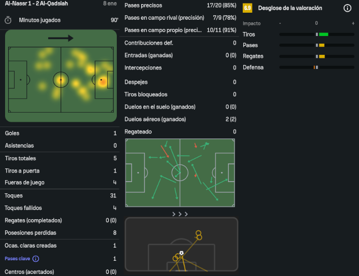 Además, tuvo un xG de 1.06 y un xA de 0.29.