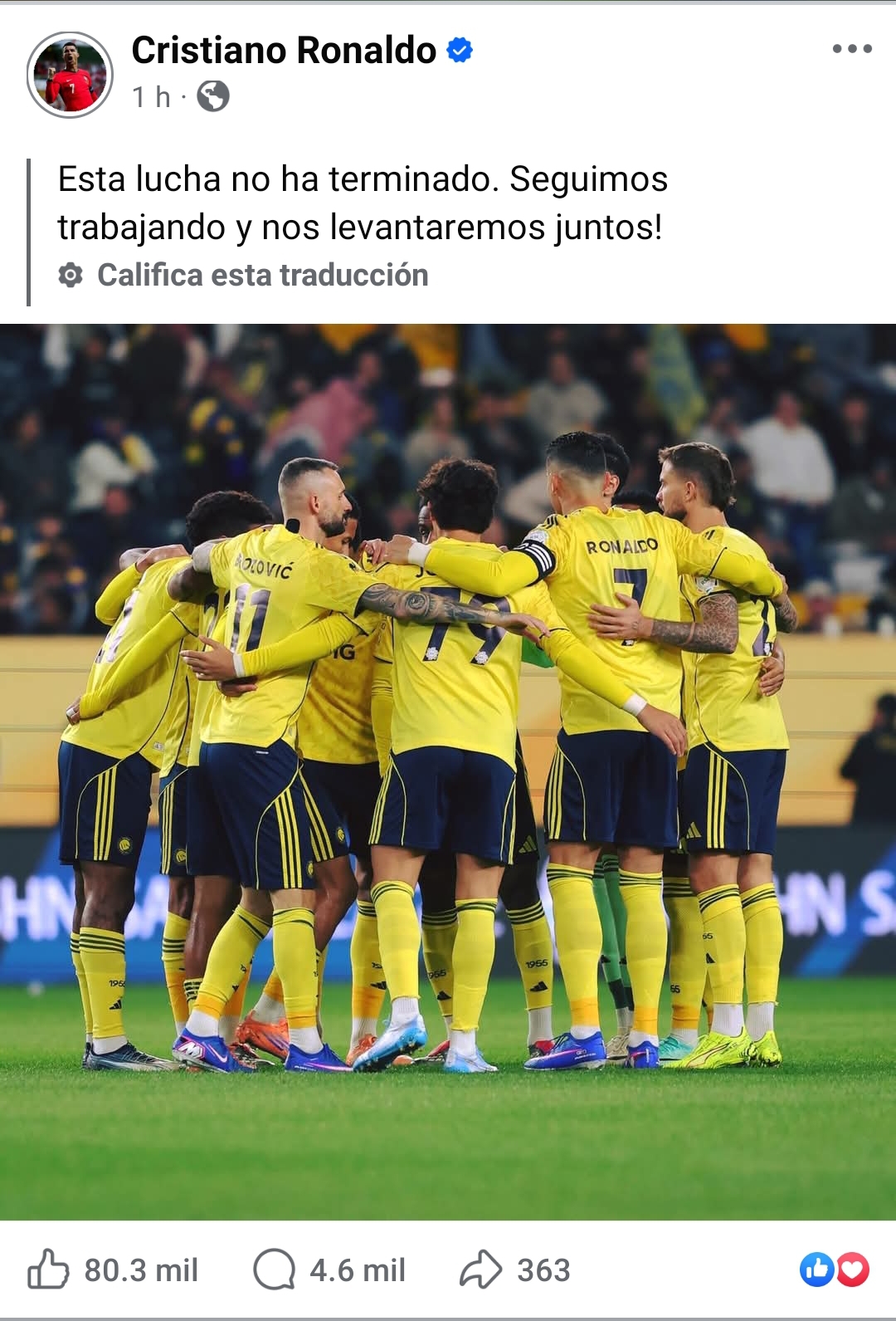 Otro partido de mierda del llorón penalero de Madeira, maquillado por un enésimo penaldo, y segunda derrota seguida del Al-Nassr… esta vez contra el Al Quesadilla.