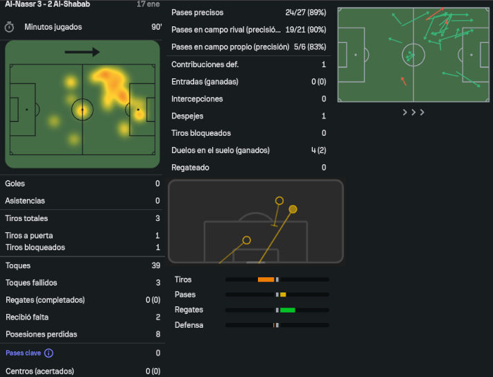 - El Al-Shabab se convierte en el rival de Ronaldo N° 51 al que se ha enfrentado 8+ veces en toda su carrera, y N° 46 a nivel de clubes.