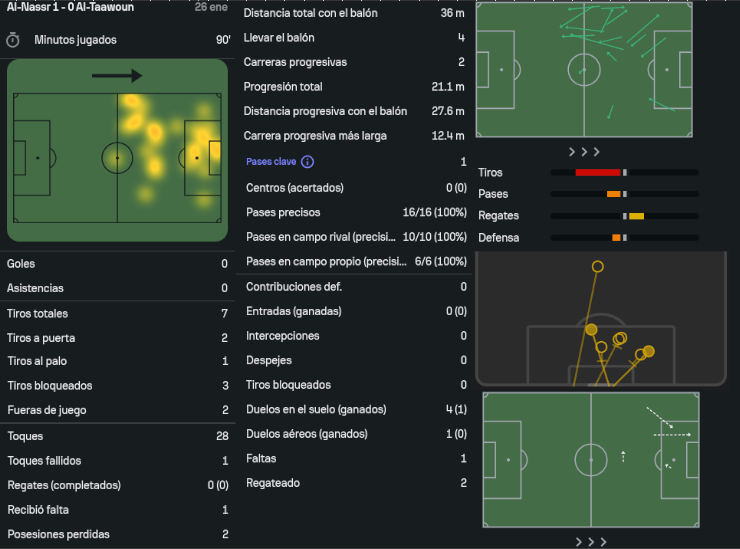 Además, tuvo un xG de 0.59 y un xA de 0.02.