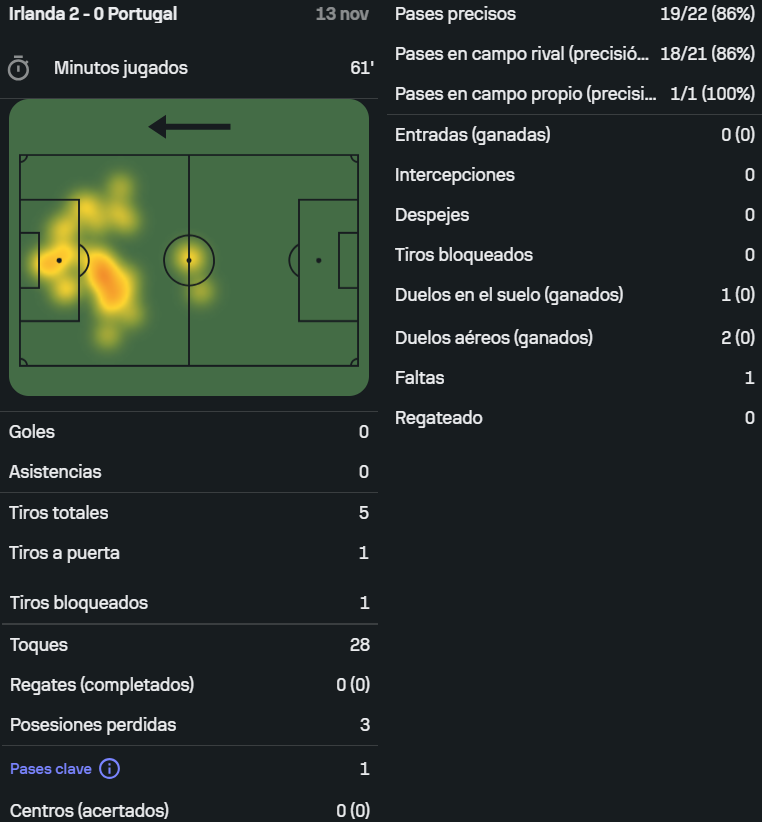 Además, tuvo un xG de 0.37 y un xA de 0.06.