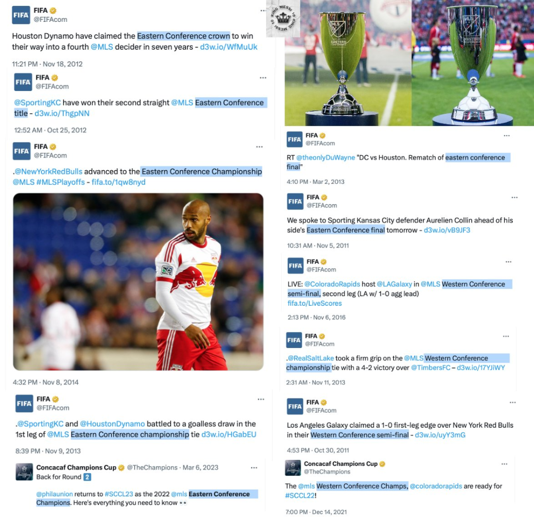 - Más recientemente, en 2021, FIFA mencionó el regreso de Philadelphia Union a la final de la Conferencia Este en el contexto de la MLS Cup, integrándolo todo como parte del torneo mayor.